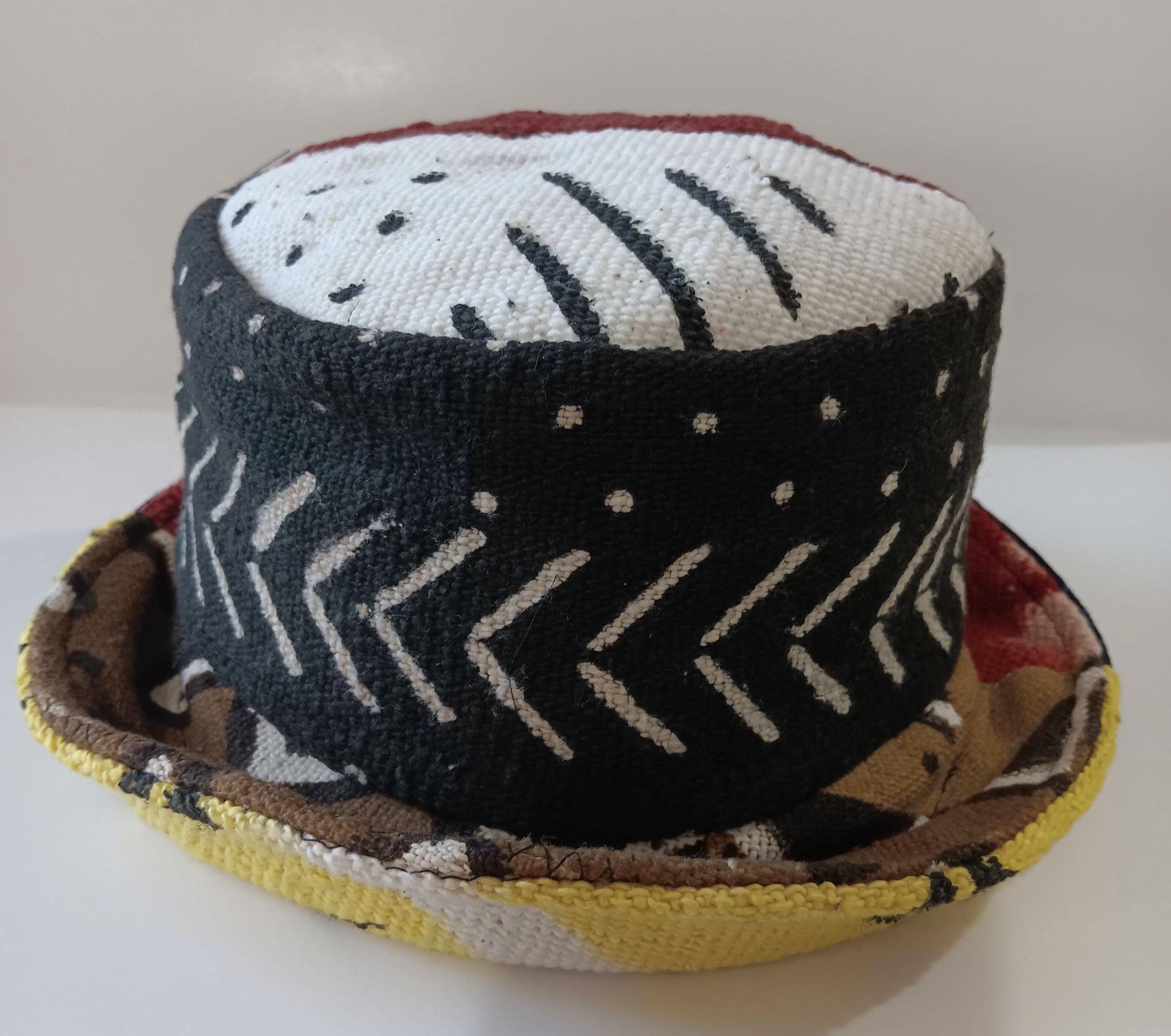 African mud cloth Bucket hat. Patch mud cloth pieces hat. Patchwork design, uniquely beautiful for "MUD CLOTH LOVERS!" Black lined well maded hat . Style to your liking. Size 23" - 23 1/2 "