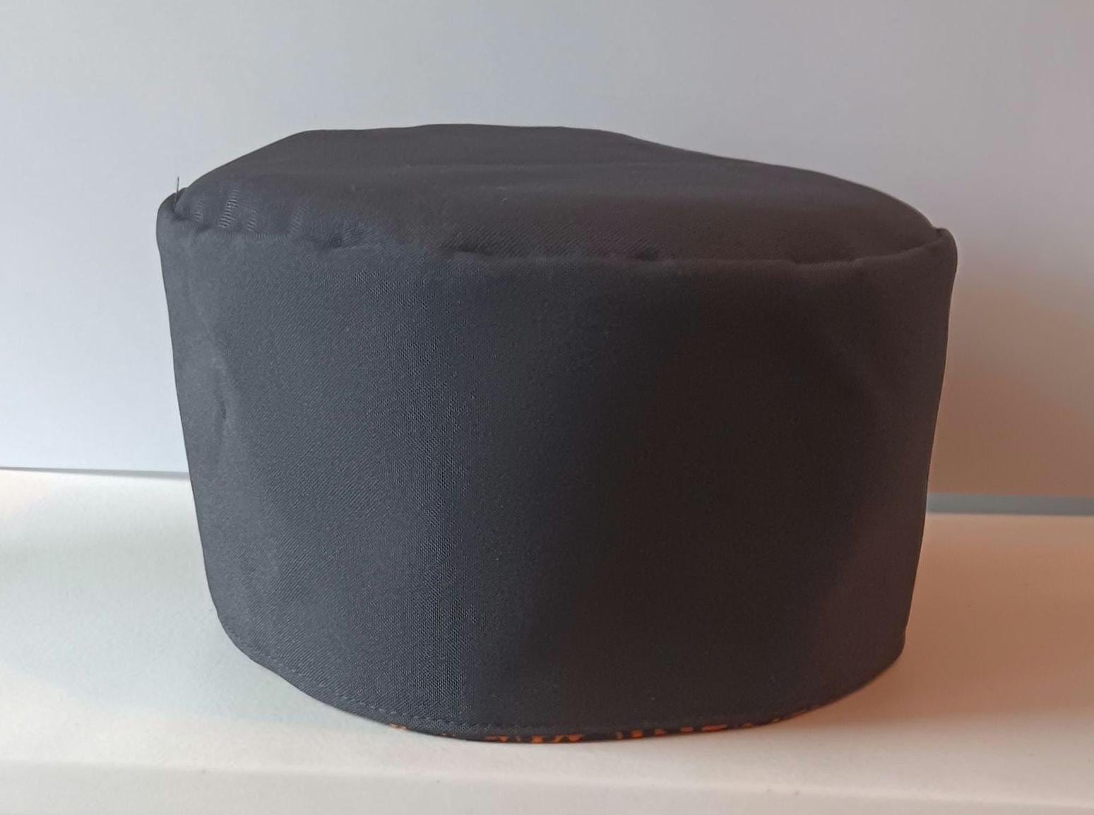 This is a beautiful African faux Mud cloth print Kufi hat. Fabric is cotton and polyester. Kufi hat colors are black and orange